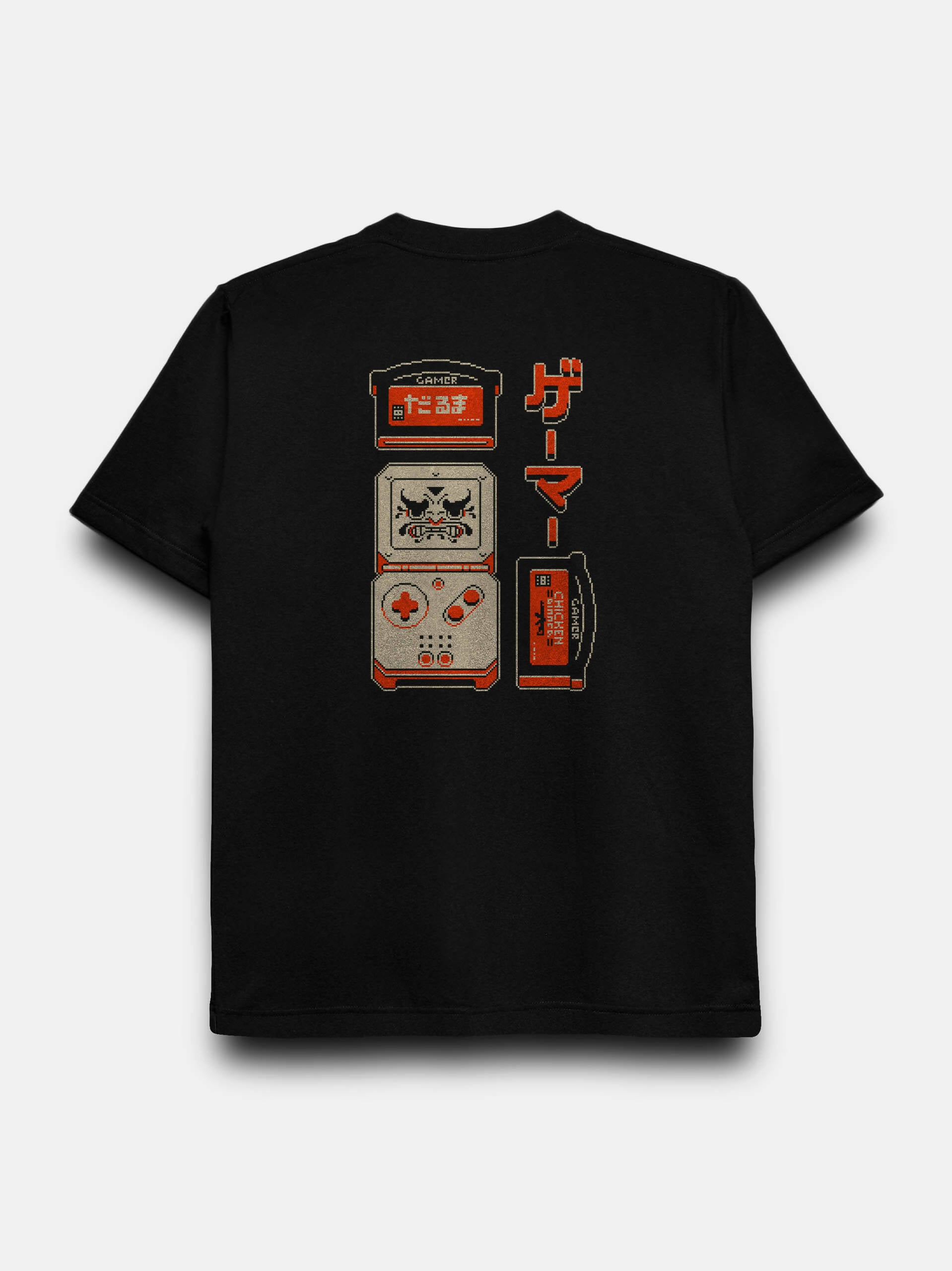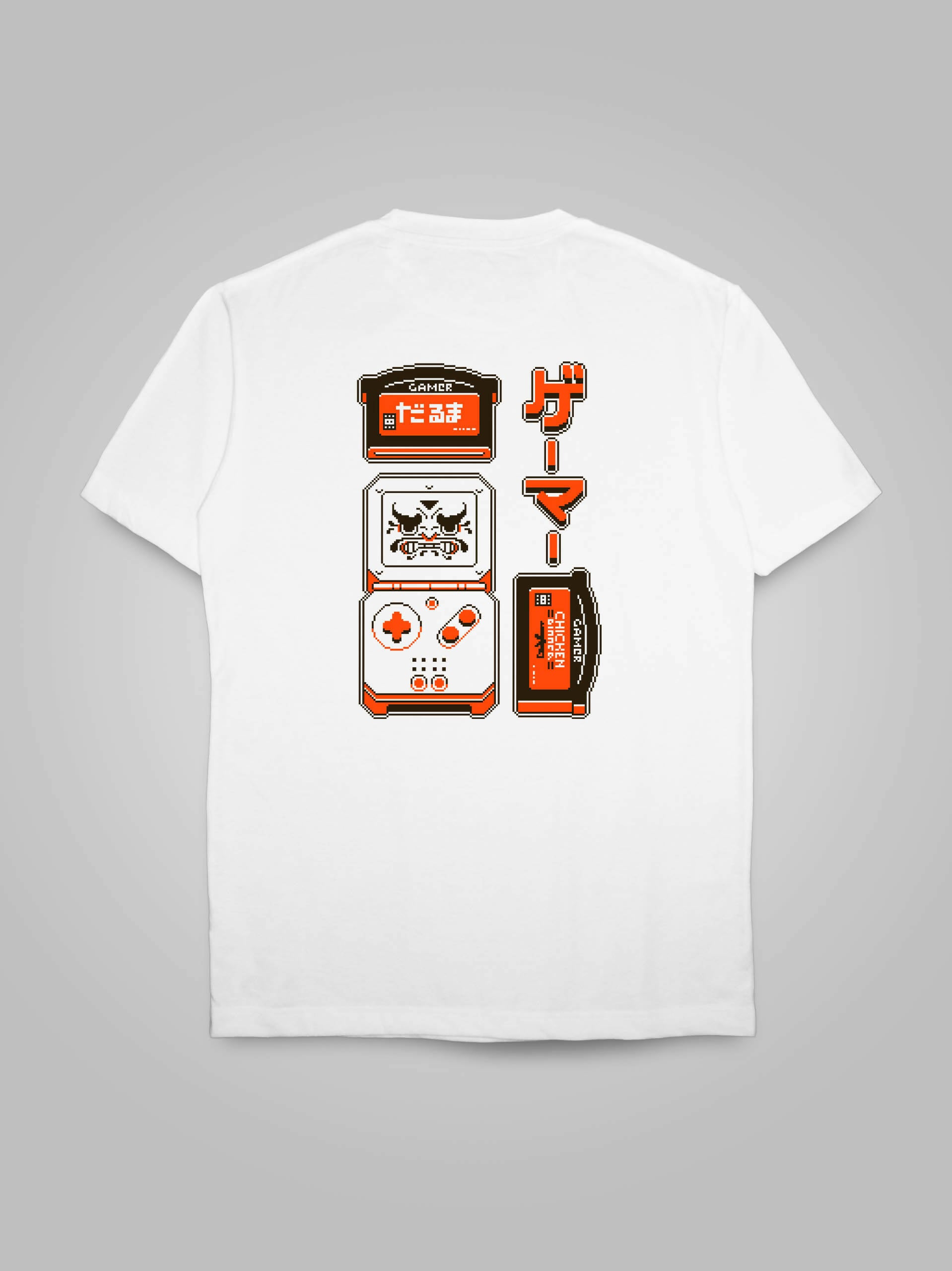 Go retro and get lucky with this pixel art shirt depicting a classic game console and a lucky daruma doll's face specially drawn for gamers of all ages!
